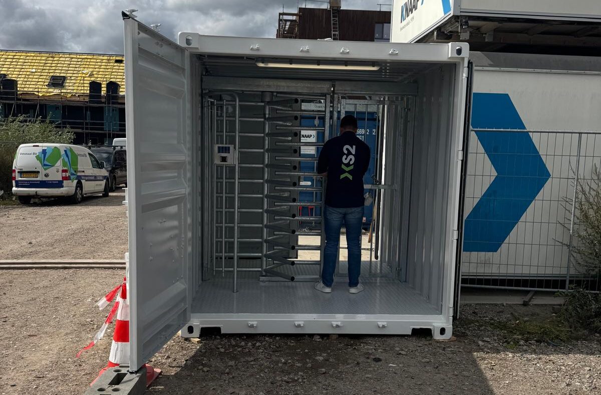 Man in container met tourniquet toegangspoort